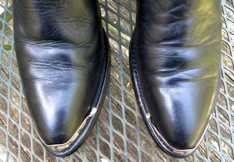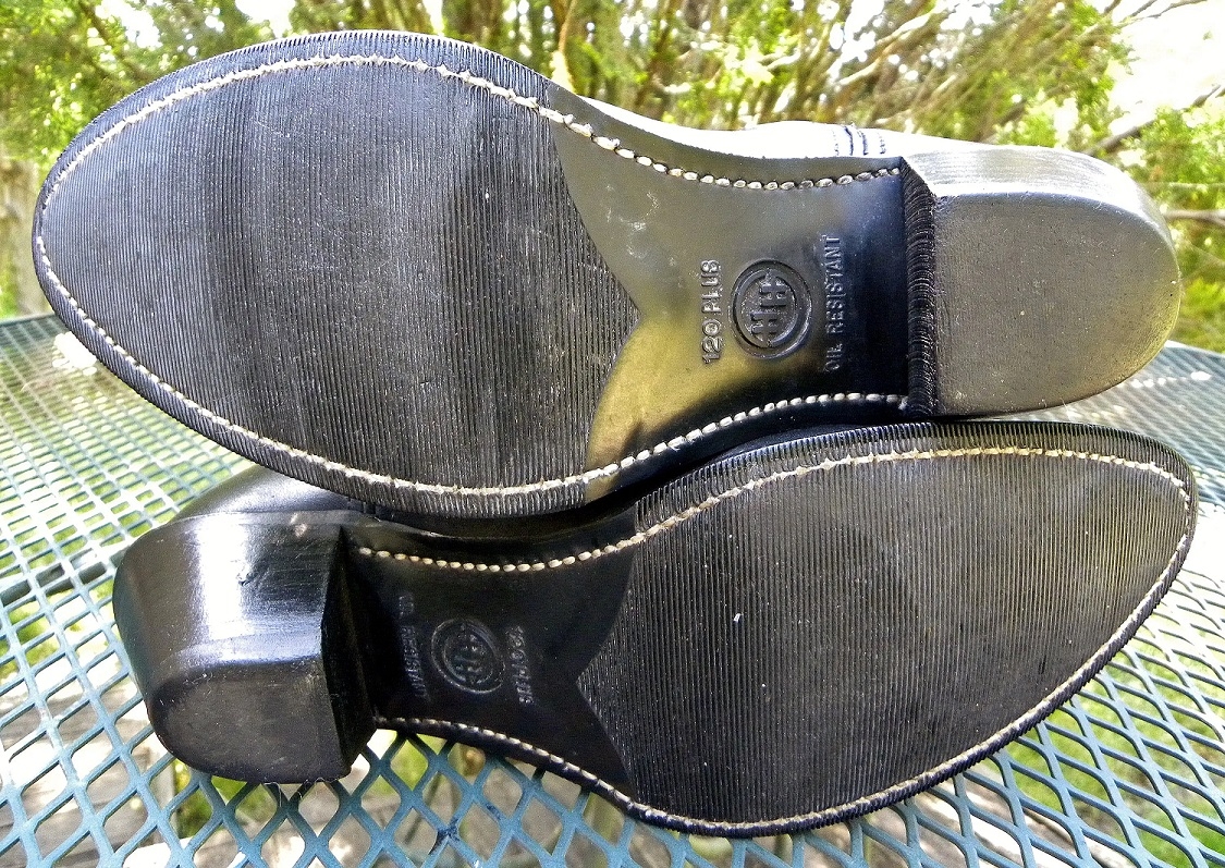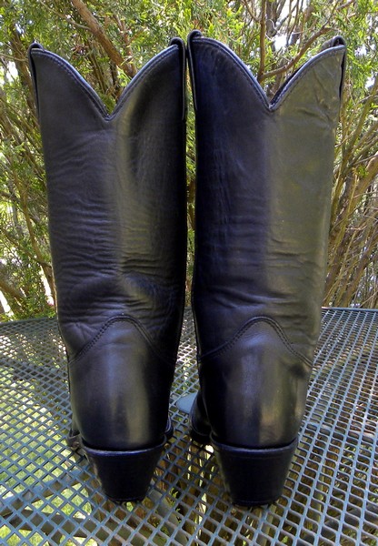 Condition: Normal average vintage age & use to include: creases in the leather, scuffs, a few scratches, rubs and nicks. The bottom sole has wear with more wear on heel backs. (You may want to install a tiny cleat on the heels)The vertical piping is chewed up in places but the boots are black so its not too obvious. The leather is very supple and they have had care.