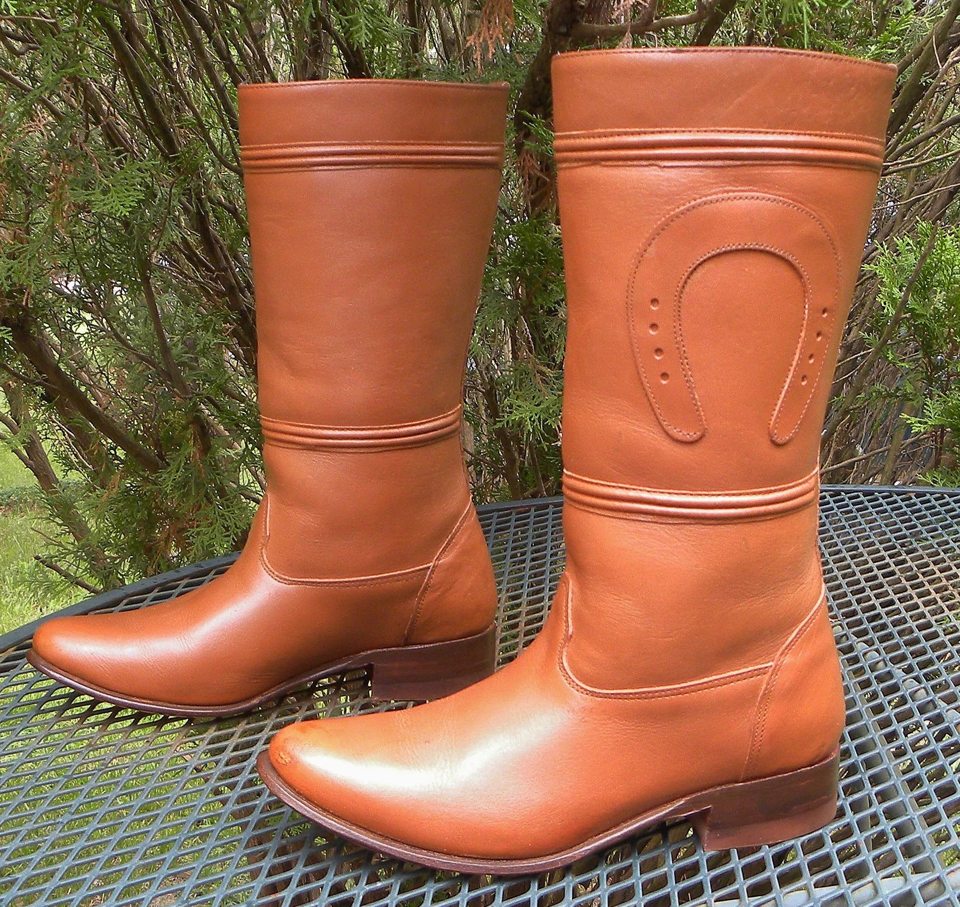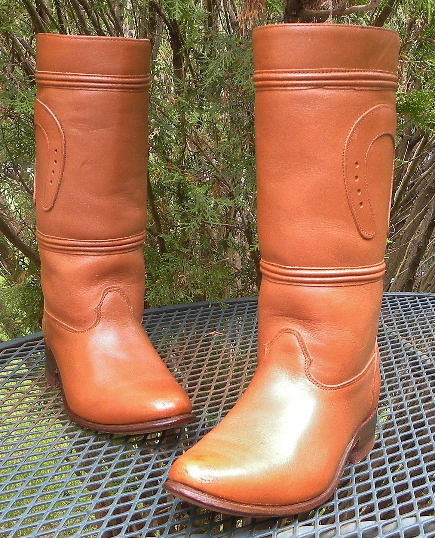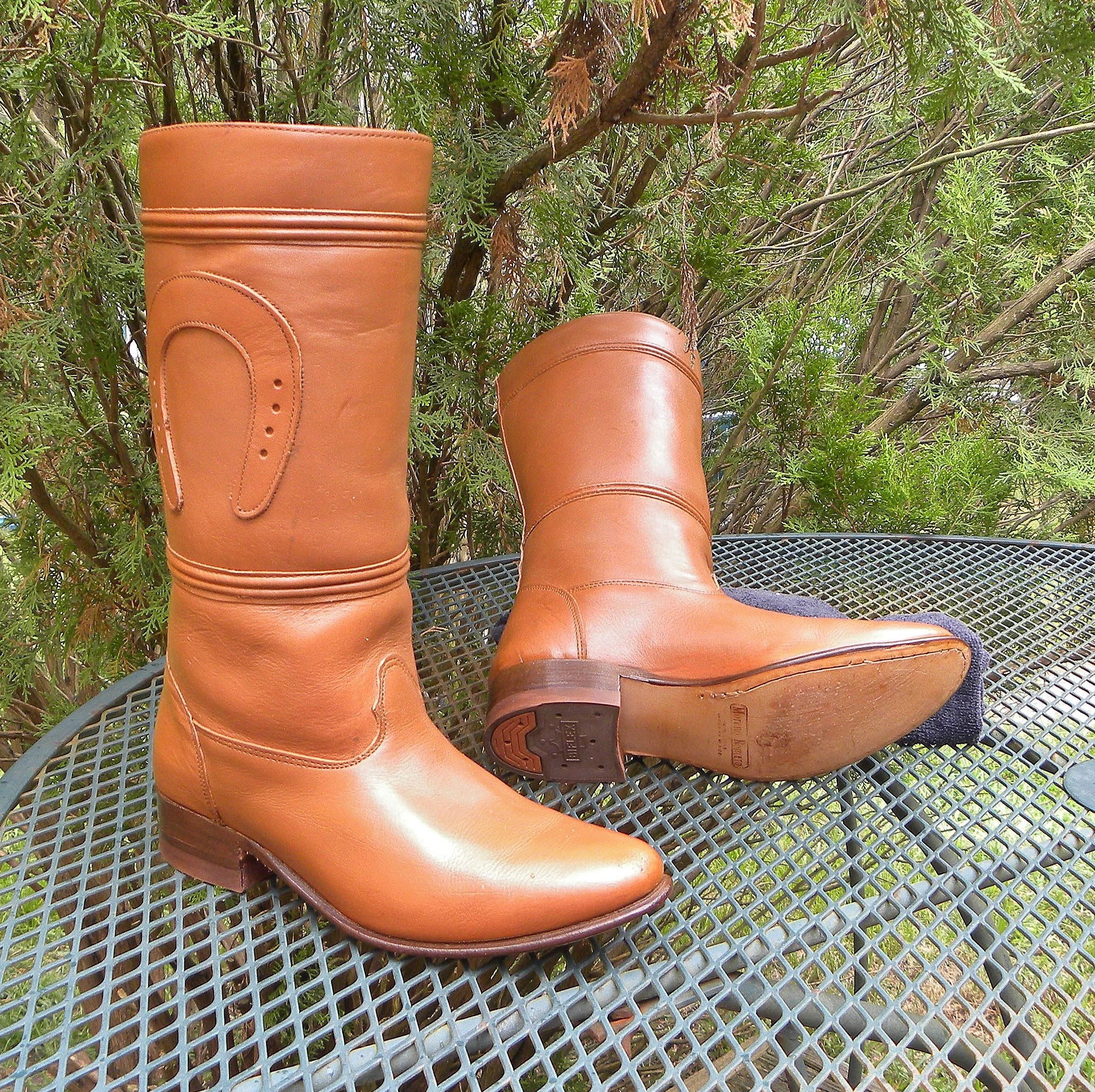 Vintage Mexico Moreno Romero Leather Western Boots Carmel Horseshoe pull on 12" Tall Womens 6.5