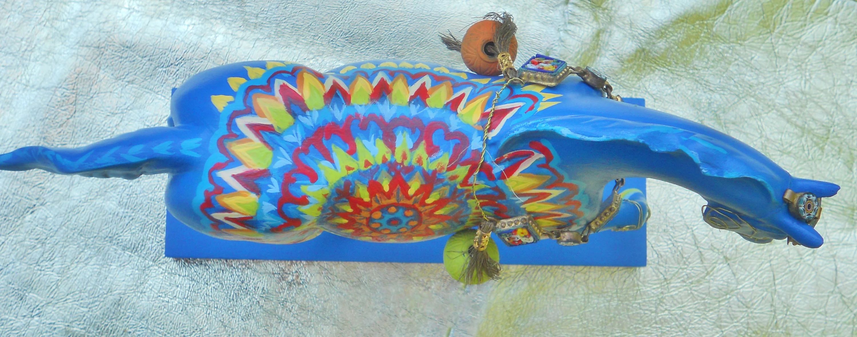 PURA VIDA: Literally translated means "Pure Life" but means contextually something approximate to "Full of Life" "Purified life", "This is living!", "Going great", or "Cool!" It is the country Slogan of COSTA RICA since 1956. Costa Ricans use the phrase to express something akin to a philosophy of strong community, perseverance, good spirits, and enjoying life slowly and celebrating good fortune of magnitudes small and large alike. Since there are many visitors to CR, the phrase has also become widely known in the USA. Costa Rica has much to boast about: Famous Painted Oxcarts, Nearly perfect weather, Mountains & Beach, Volcanoes, Winter home for most USA Hummingbirds (yes, they fly alllll that way), THE best tasting coffee world-over, 24kt Fine Mayan Gold, Beautiful, ornate Churches, Fantastic fruits & vegetables, and an unabashed love & respect for horses. The theme for this pony was those fantastic and mesmerizingly cool oxcarts: