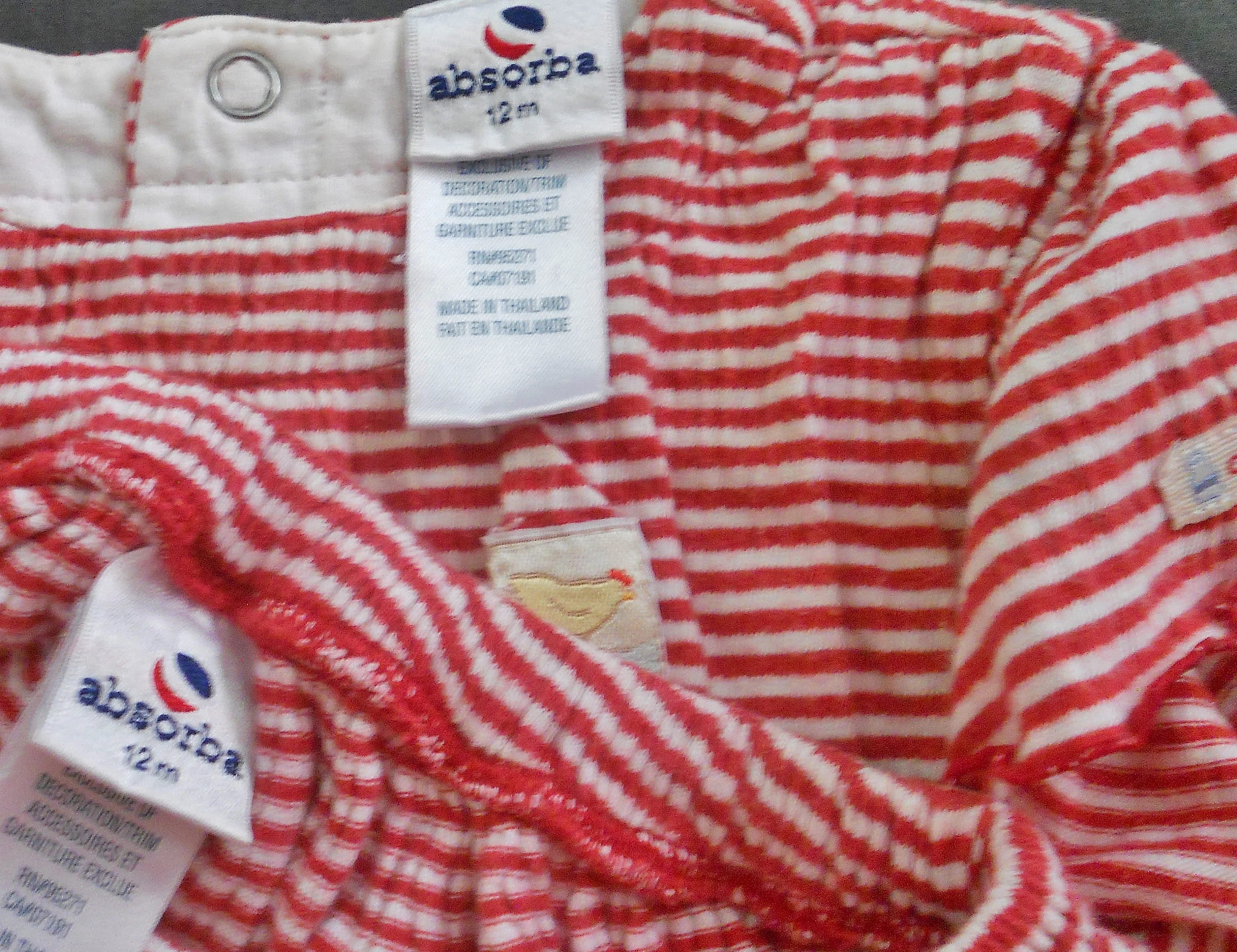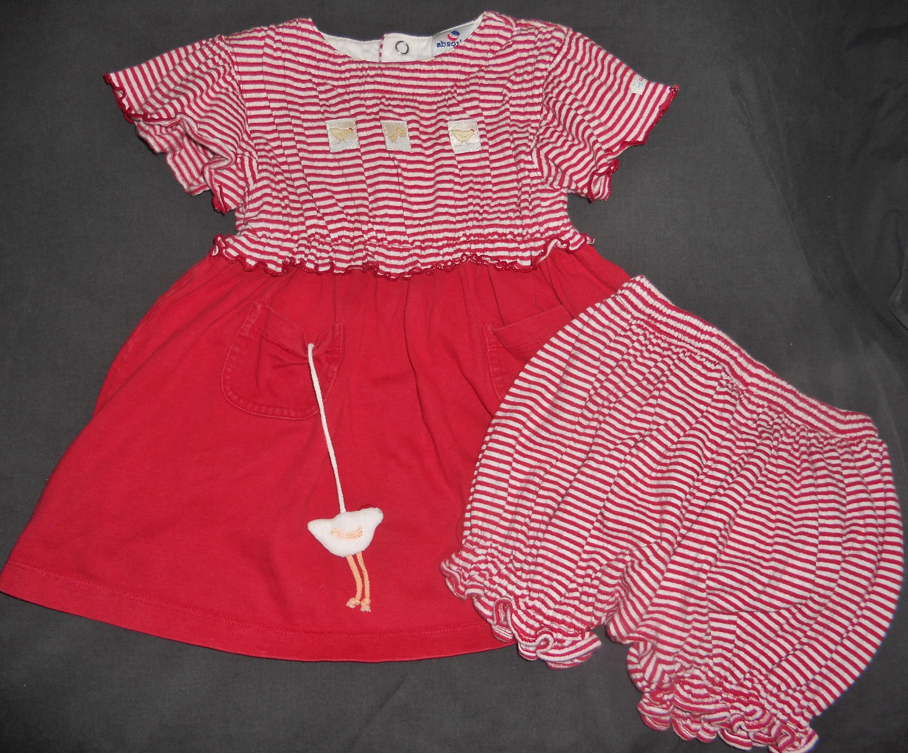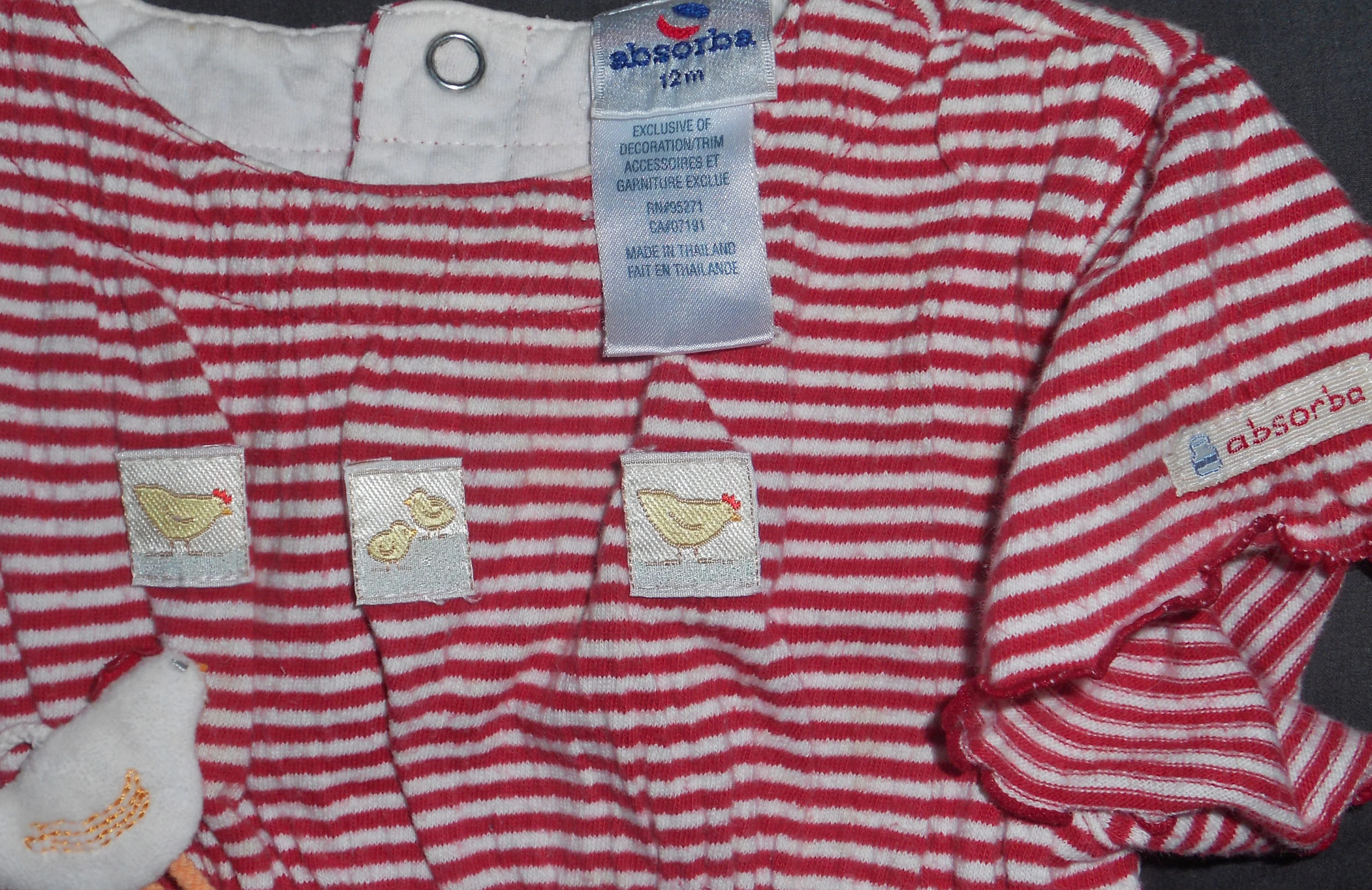 You are viewing a darling Vintage ABSORBA 2 piece Dress & panty Set for a baby girl sized in 12 months, but this set looks larger. Absorba was famous for its soft fine cotton and superb DETAILED fun kids styling. This dress has 2 cutout pockets on the front, a little ruffle encircling the waist & 4 red enamel snap buttons down the back bodice. There is red scalloped edging on the ruffle & cuff edge. The panties are roomy & have an elastic waist. Absorba was always known for its fabulous cotton fabric. The Fabric: 100% Cotton. In good condition. If you are interested in Vintage Kids Brand name & eclectic items, Favorite me. ASK! I will be slowly listing many neat & unusual items! Thanks for looking! FREE SHIPPING!