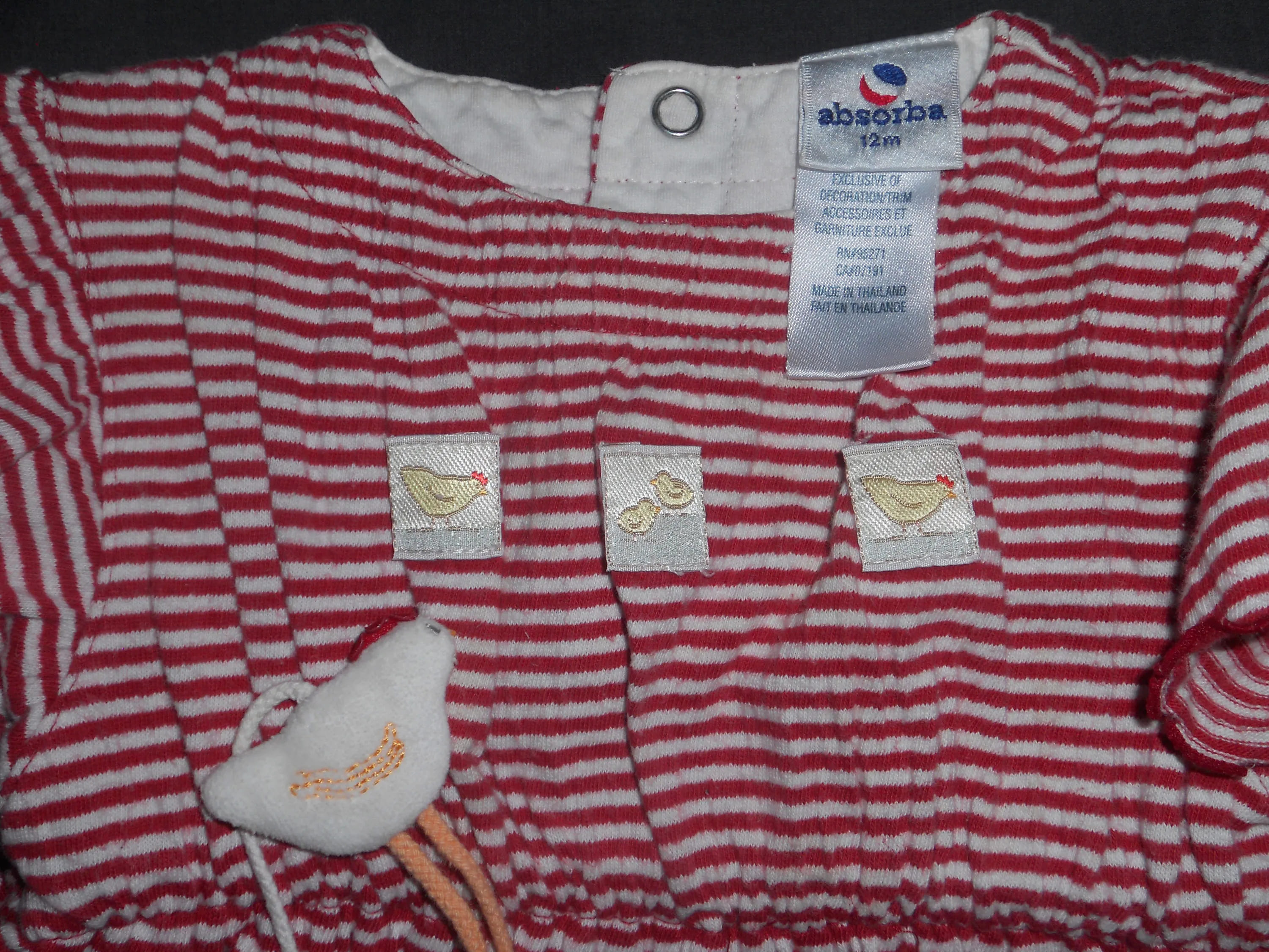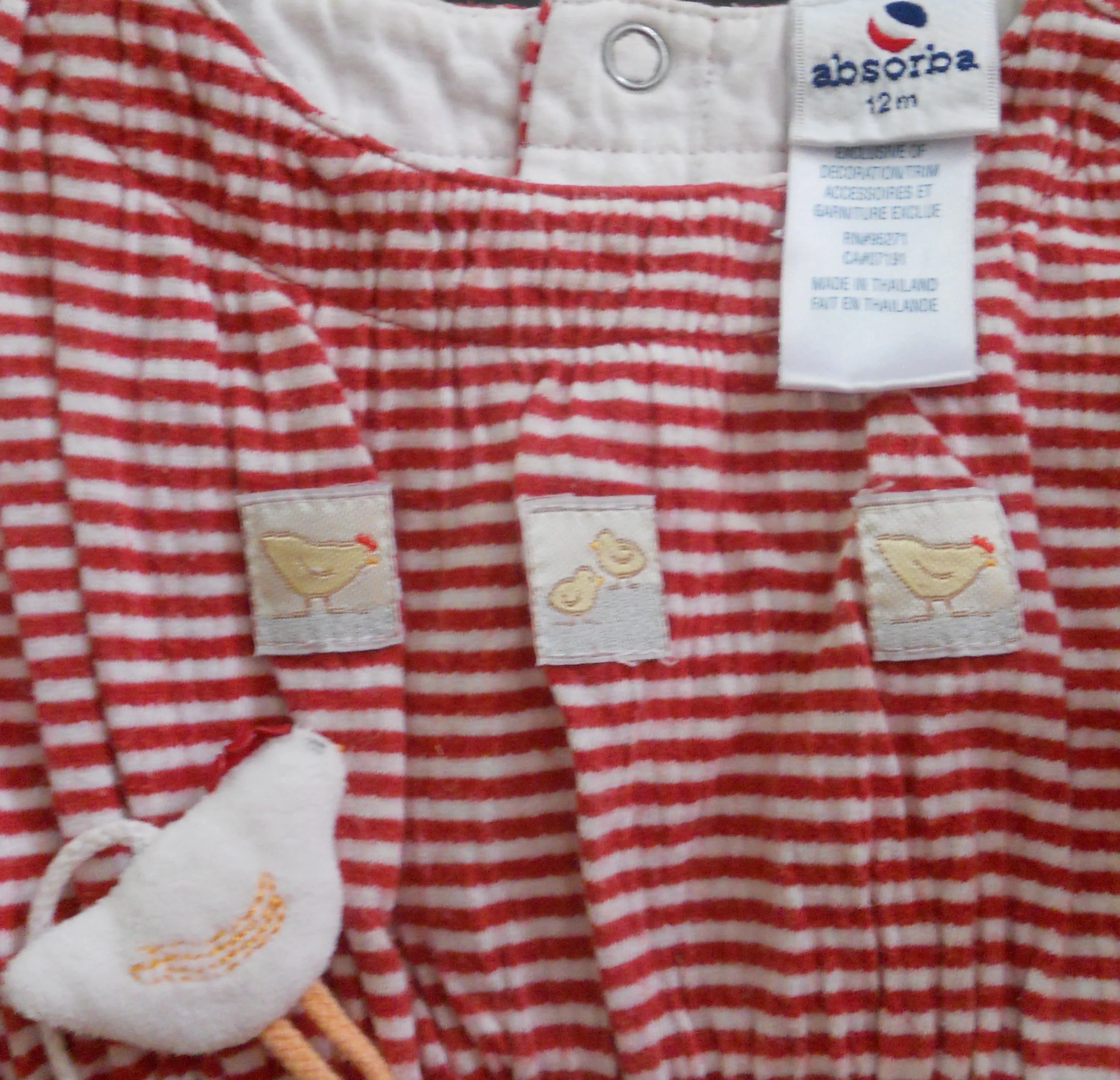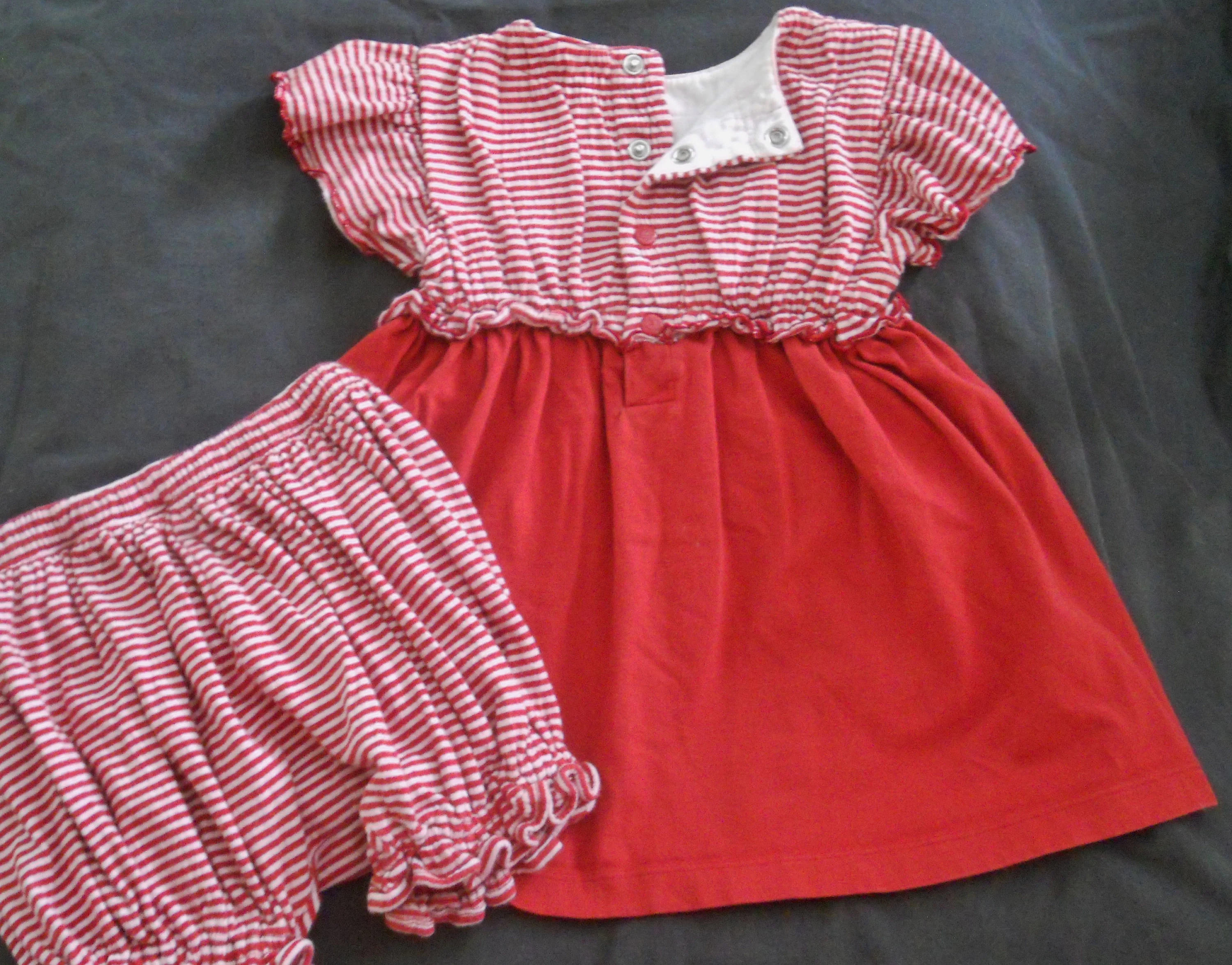 You are viewing a darling Vintage ABSORBA 2 piece Dress & panty Set for a baby girl sized in 12 months, but this set looks larger. Absorba was famous for its soft fine cotton and superb DETAILED fun kids styling. This dress has 2 cutout pockets on the front, a little ruffle encircling the waist & 4 red enamel snap buttons down the back bodice. There is red scalloped edging on the ruffle & cuff edge. The panties are roomy & have an elastic waist. Absorba was always known for its fabulous cotton fabric. The Fabric: 100% Cotton. In good condition. If you are interested in Vintage Kids Brand name & eclectic items, Favorite me. ASK! I will be slowly listing many neat & unusual items! Thanks for looking! FREE SHIPPING!