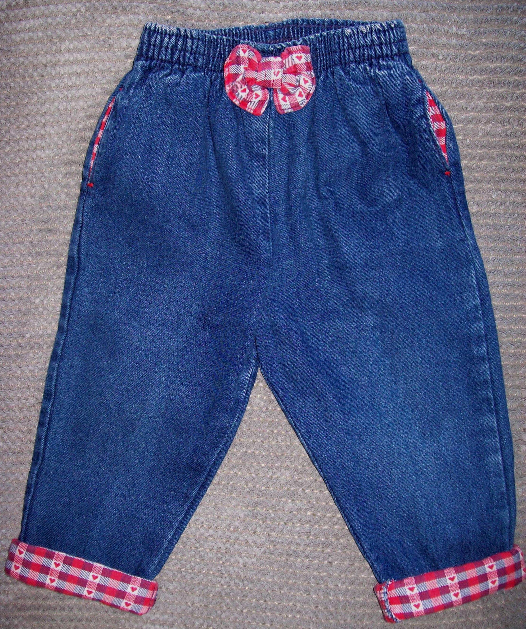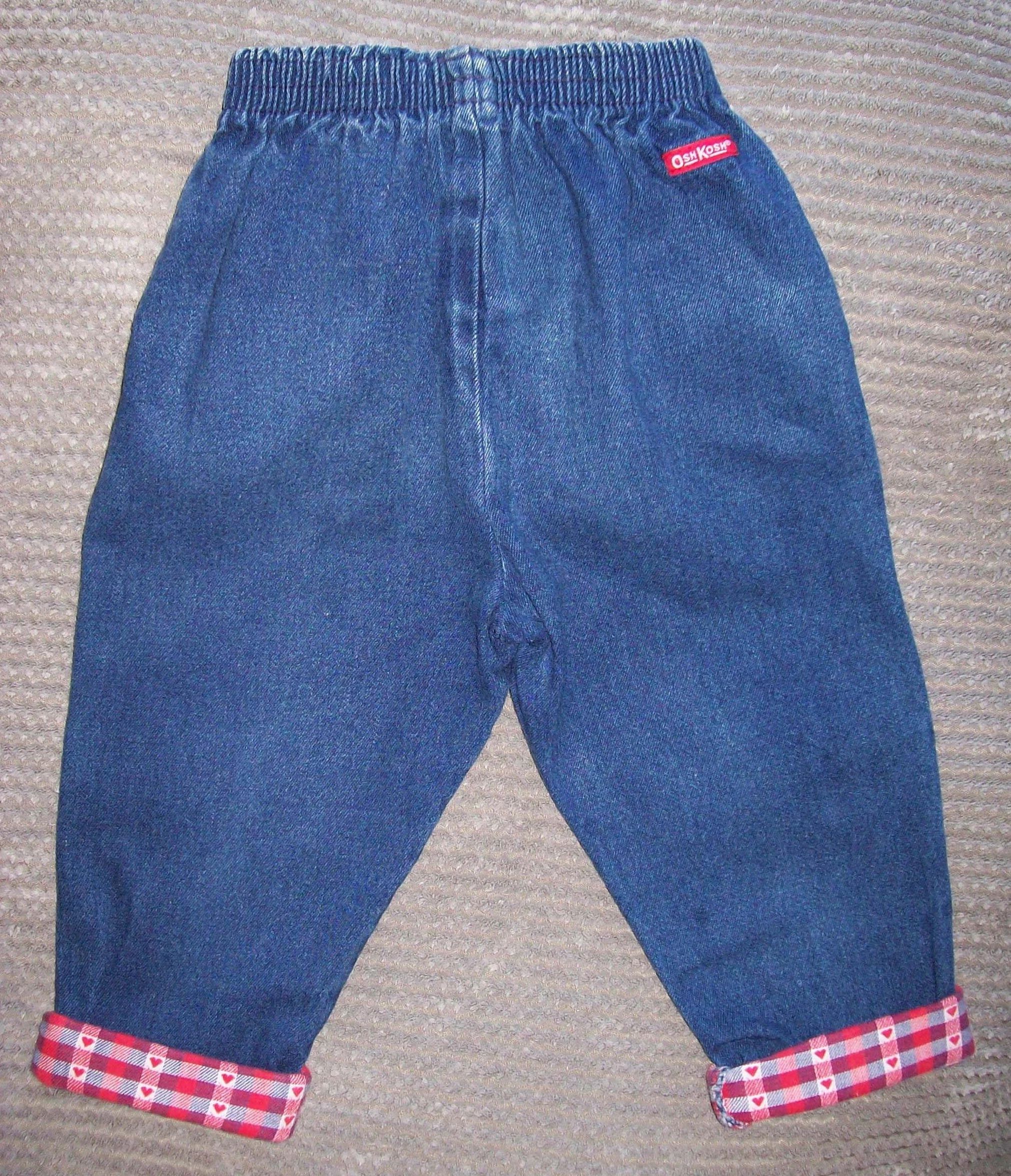 You are viewing a preowned pair of Vintage USA Union made Blue denim Jeans Co by Osh Kosh B'Gosh for a baby girl size 24 months. These adorable blue denim jeans have a Bow in the front on the waistband, have corresponding heart plaid cuffs and hip pocket linings. They have a compfy elastic waist and a traditional rectangular logo patch on the rear. These pants are in good Vintage condition, slight fading/faded places. Measurements: elastic waist: 17-22"~Inseam with cuffs turned up: 10.5". If you are interested in Vintage Kids Brand name & eclectic items, Favorite me. I will be slowly listing many neat items! Thanks for looking!
