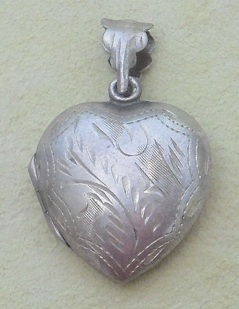 You are viewing a preowned Vintage Sterling Silver Heart Locket Pendant perfect for photo keepsakes. Moms LOVE these kind of lockets!! This lovely locket measures (without the bale) 12mm X 12 mm. It is finely engraved/etched in the current style of that day. It has a quaint scalloped bale, opens & closes easily and I have not cleaned it. Most buyers want it without cleaning. Inside it is stamped 925 and at the top of the heart. In very good condition. Thanks for looking!