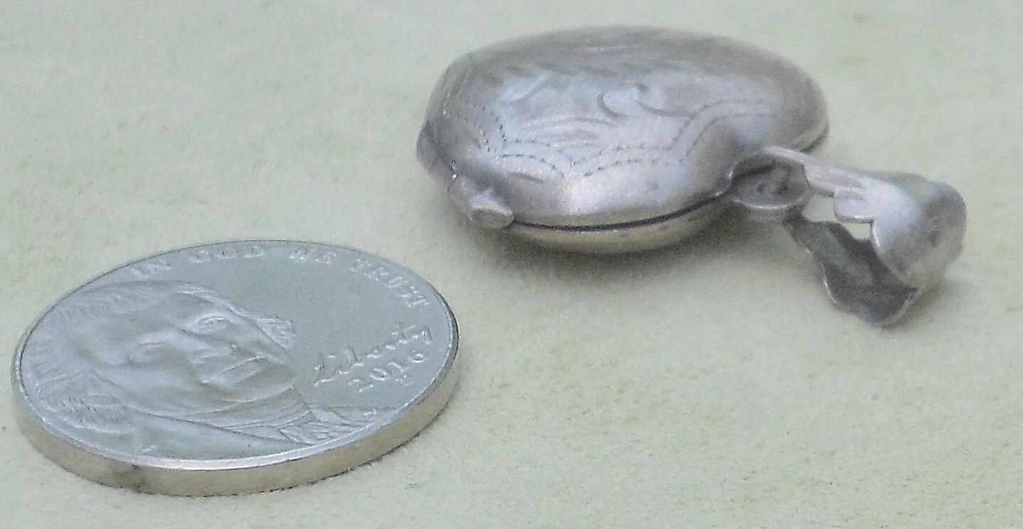 Vintage Sterling Silver Heart LOCKET PENDANT 12mm X12mm--Etched 925 Jewelry Scalloped Bale