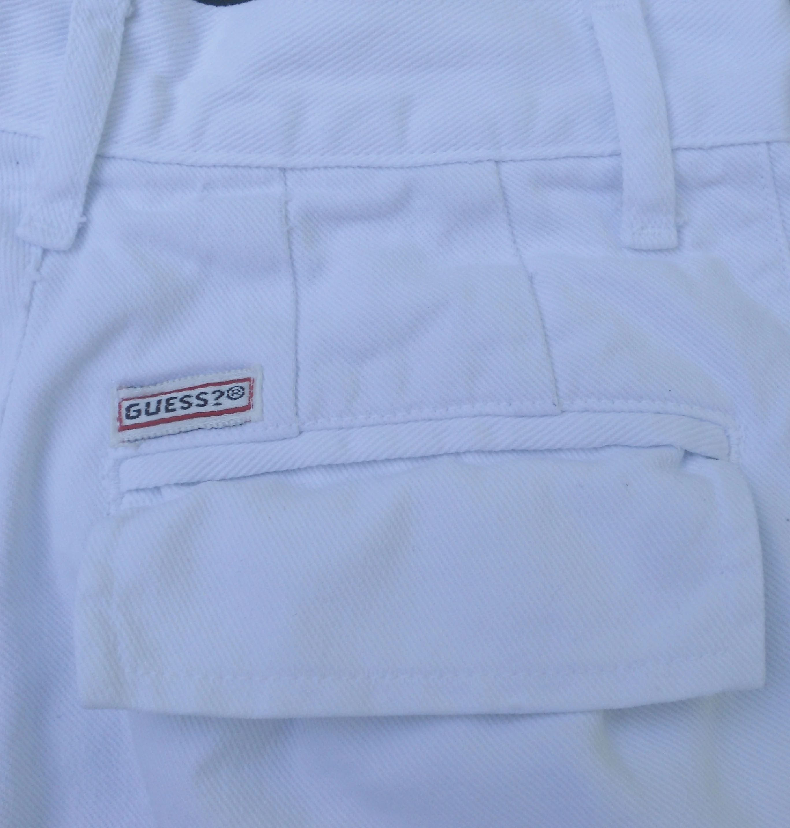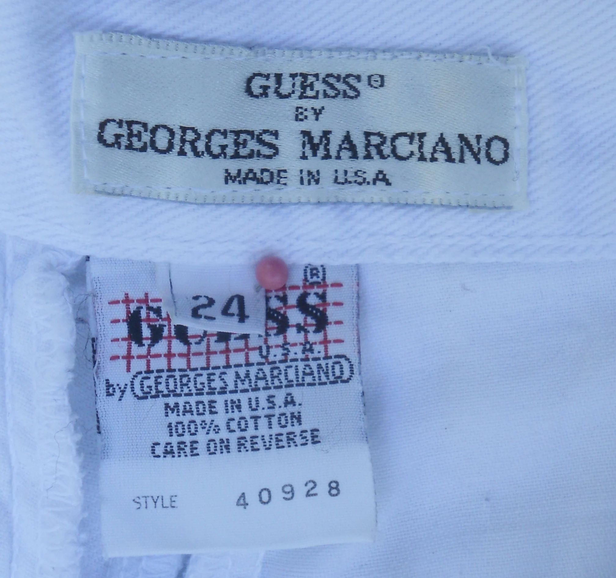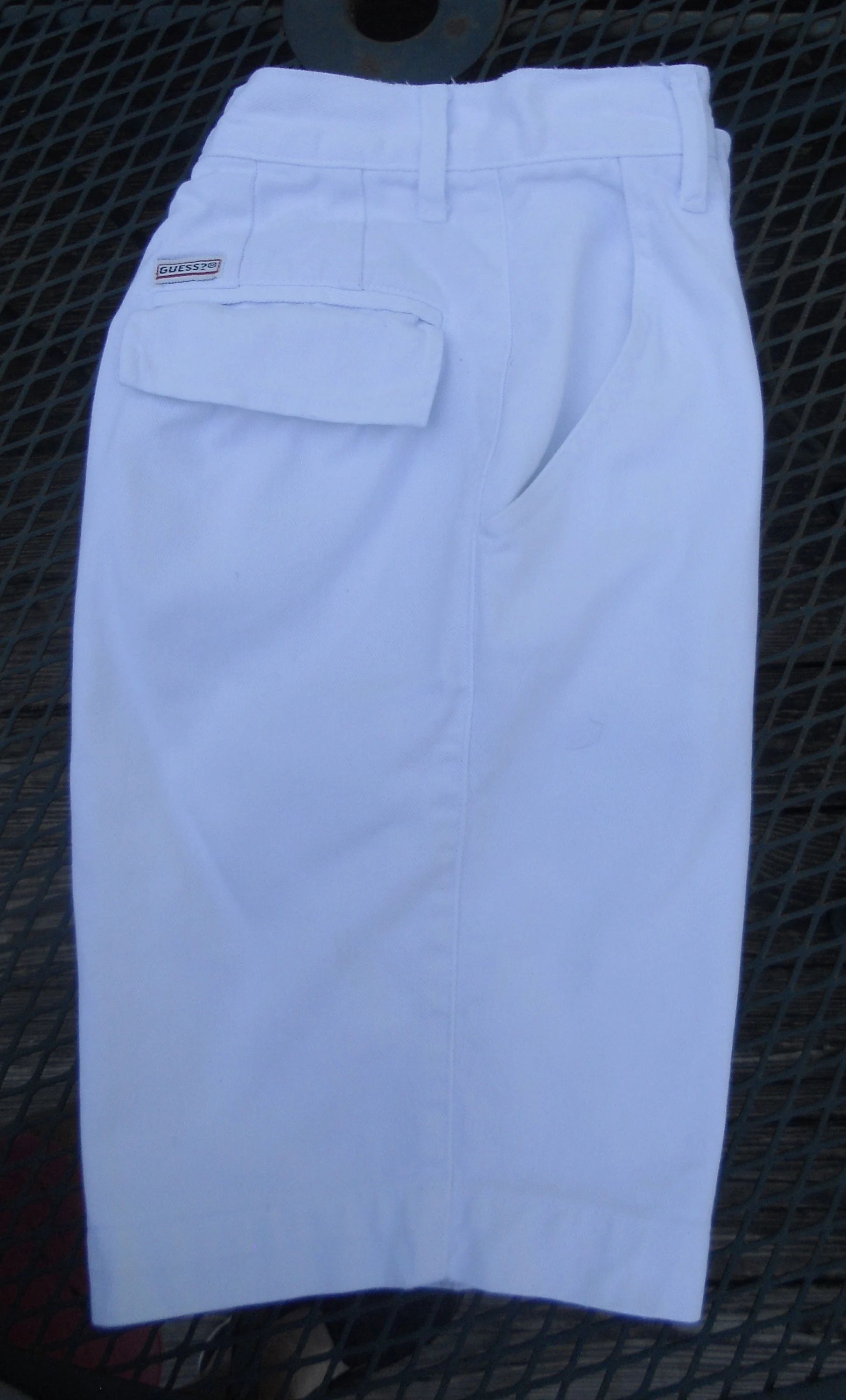 You are viewing an authentic RARE very early Vintage USA Pair of White Denim Jean Shorts from GUESS by Georges Marciano in size unisex Youth 24 waist. Approximate size: size 10= Waist: 24"~ Inseam: 9". These walking shorts have a 5.5" zippered front fly, 4 pockets (2 rear flapped), 5 belt loops, and the famous rectangular Guess logo in red/white on the back. They are proudly MADE IN THE USA. 100% Cotton Denim! These are in good condition. If you are interested in Vintage Kids Brand name & eclectic items, Favorite me. I will be slowly listing many neat items! Thanks for looking ~ FREE SHIPPING!